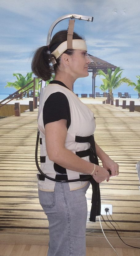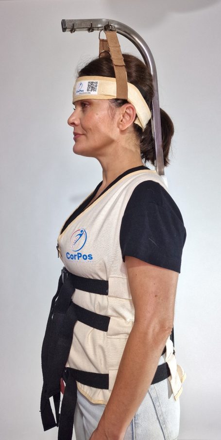 Fruto de ese recorrido nació el Corrector Postural CorPos, un sistema con tracción axial, único por sus características y con patente en vigor, desarrollado desde la experiencia en camilla y pensado como complemento natural al trabajo manual.